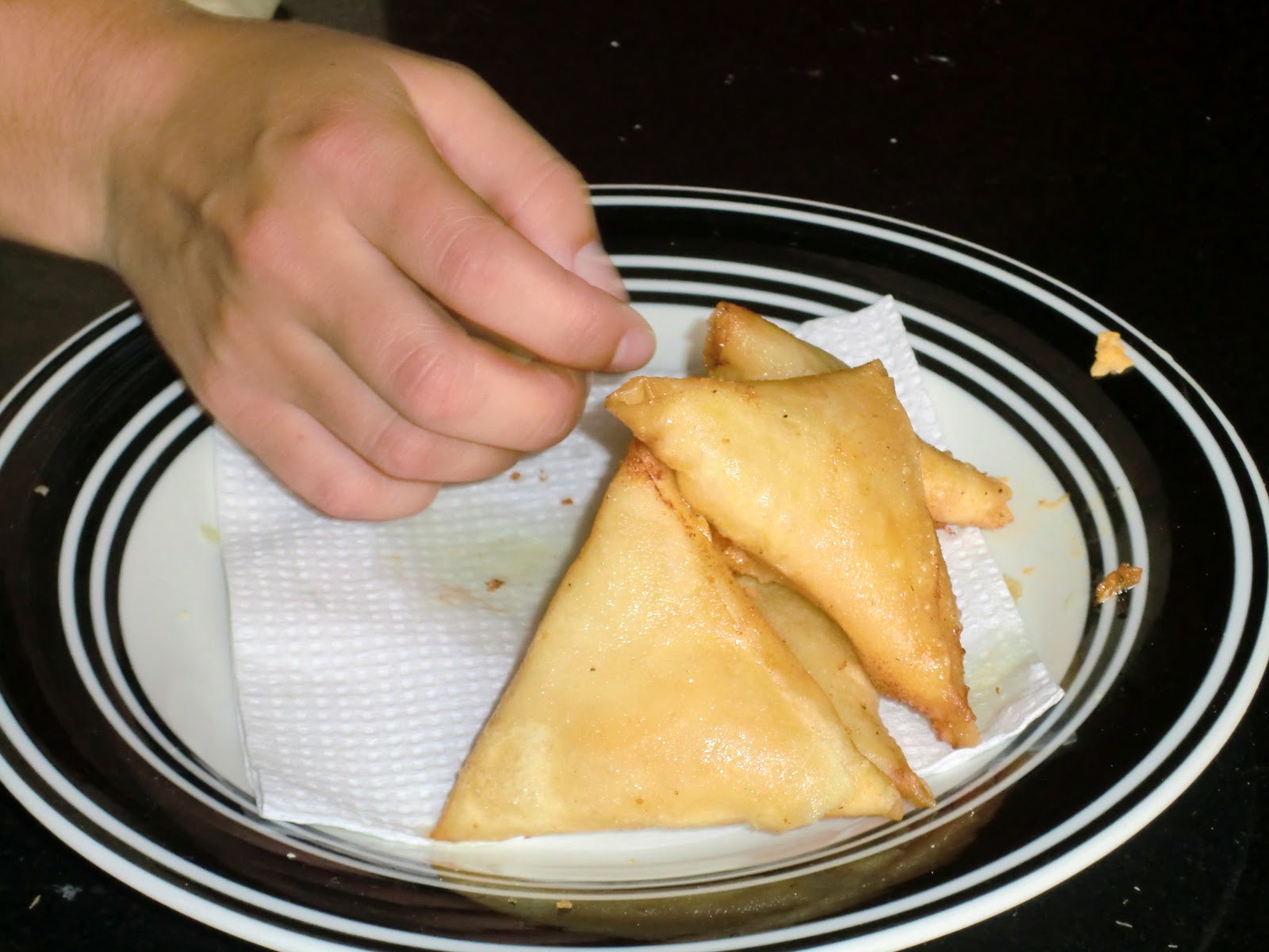 We made cheese and onion samoosas which are much like the Indian ones except that the skins are much more like won ton skins than the pastry-like ones of the Indian version. I am hoping to attach the recipes for these things because everything we made was excellent.